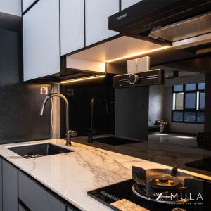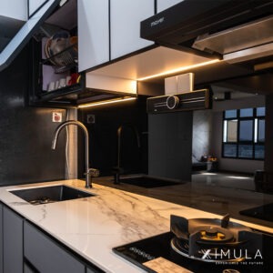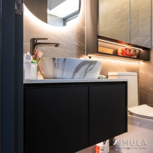 As the heart of the home, the kitchen steals the spotlight with our signature kitchen system in a striking black aluminum finish. This unique aesthetic seamlessly blends contemporary style with functional design, creating a culinary haven that’s as visually stunning as it is practical.